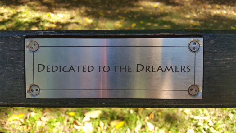 陌生人的故事被书写成文字,刻在中央公园的长椅椅背上。故事背后则是一个叫做「认养长椅」(Adopt-a-Bench)的项目。