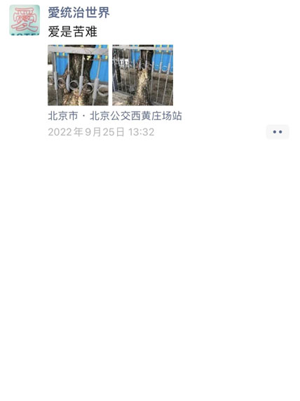 来加爱宝的人各种各样,目的各不相同。 从十几岁的高中生的到30多岁的成年人,有的是给朋友过生日,一群人买几个,然后等生日那天贴出来。还有的人是为表白贴在对方的学校里。我会尽量满足贴的地方,比如有人要求贴在架子鼓上,我出门就去有架子鼓的地方。 本来我就不喜欢在室内待着,必须得出去逛,出去贴纸刚好符合。这件事已经和我的生活分不开了,甚至给了我更丰富的生活。 对于贴的地点,如果可以我希望贴到不同的城市。也有试过让在外地的朋友贴,由于我在北京,爱宝的号就不能定位到别的省,所以目前发出来的都是北京的地点。 但好在来加爱宝的人来自各地,现在在北京贴只是一个小小的开始。 前两天我去了一个叫libertango的地方,那里每周三有女性夸夸会,当时来的几个女生,之前就已经加过“愛统治世界“的号了。我当时拿着二维码想去贴,被她们认出来了,这种感觉就很奇妙。 我们本来不认识,但她们知道有“愛统治世界“的存在,我还曾经亲手把她的爱贴出去,突然间见到真人,感觉人与人之间的连接还挺奇妙的。 爱宝和我是分不开的,因为开始做这件事时想法很简单,没有想到会是现在这么大的影响力。收到的越来越多,发现我作为自己有些撑不住这么多爱了,但是如果作为爱宝的话,完全是可以的。 查看小动物的爱: