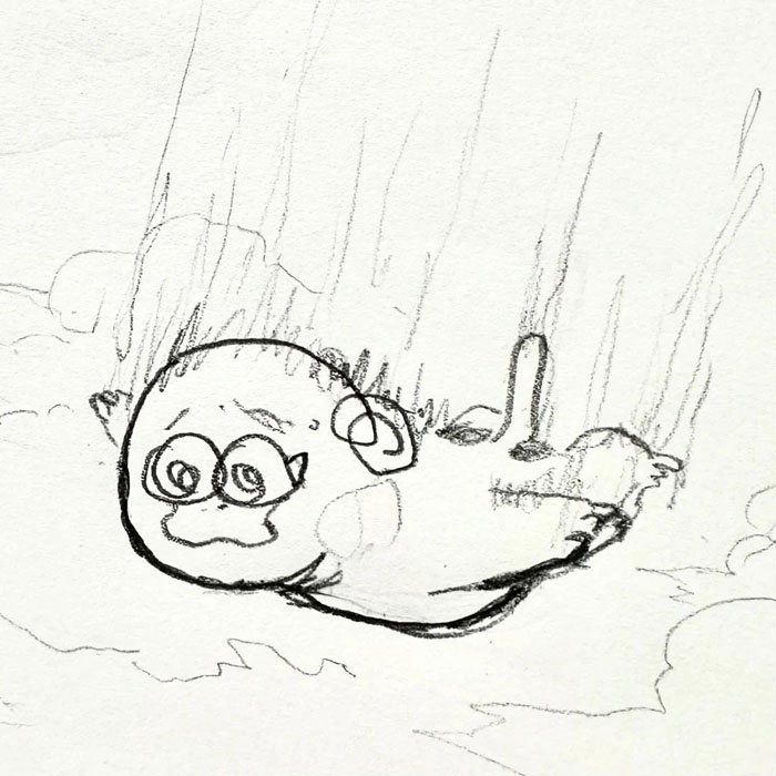 毕竟,没人会拒绝跟着一只圆墩墩毛茸茸的小猴子,瞪着大大眼睛在它的世界中冒险奇遇。作者子尤是位现居日本的兼职漫画创作者。去年吗喽表情包火起来之后,他看到有位博主在用铅笔画吉娃娃犬,觉得这种形式的创作简单有趣,就尝试画出手机里的表情包发在自己的账号上,一开始只是画着玩,没想到意外获得了很多关注。子尤笔下的吗喽,最初只是一只广义上的“猴子”,在无数次成长以及和读者的交流中,逐渐变成现在有一定故事性的“喽喽”形象。这些组成喽喽的线条看上去歪歪扭扭,实则一笔都不多余。细节处的粗细变化展现出结构和质感,越是简单越是考验绘画功力。