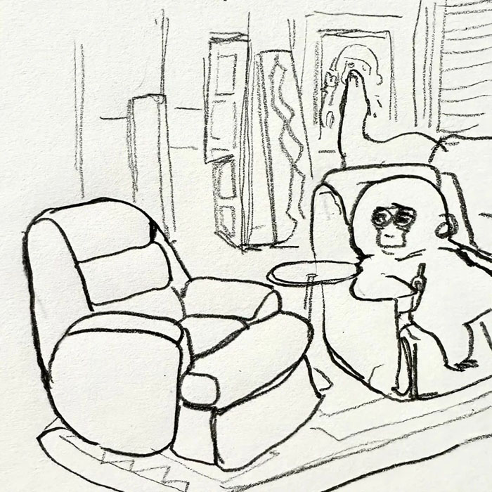 从去年开始,各种“猴子打工人”的表情包占领了年轻人的微信对话框。在互联网语境下,这些猴子有一个别称“吗喽”,并且根据各种梗图,进化出了一系列诸如 “吗喽的命也是命”“她爱的是齐天大圣,不是我这只吗喽”的自我调侃。“吗喽”是两广地区方言中“猴子”的意思。伴随着各种表情包的出现,在茫茫互联网中,有一个黑白速写的“吗喽”形象,虽然简单,但走入了很多人的内心。如今的互联网上有太多内卷和焦虑,太多好看的外貌和装扮,用一支铅笔在素描纸上画出“吗喽宇宙”的作者子尤,却想用粗糙朴实的线条画一些真正通往内心的东西。在这个纷繁复杂的世界里,用原始质朴的方式,带给我们温暖与治愈。打开子尤的小红书@子尤画点东西,就算是工作了一天拖着疲惫的身躯站在地铁里,也能在翻阅完五张漫画后会心一笑。