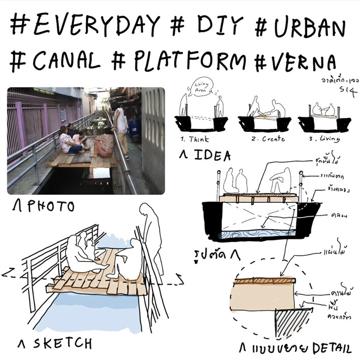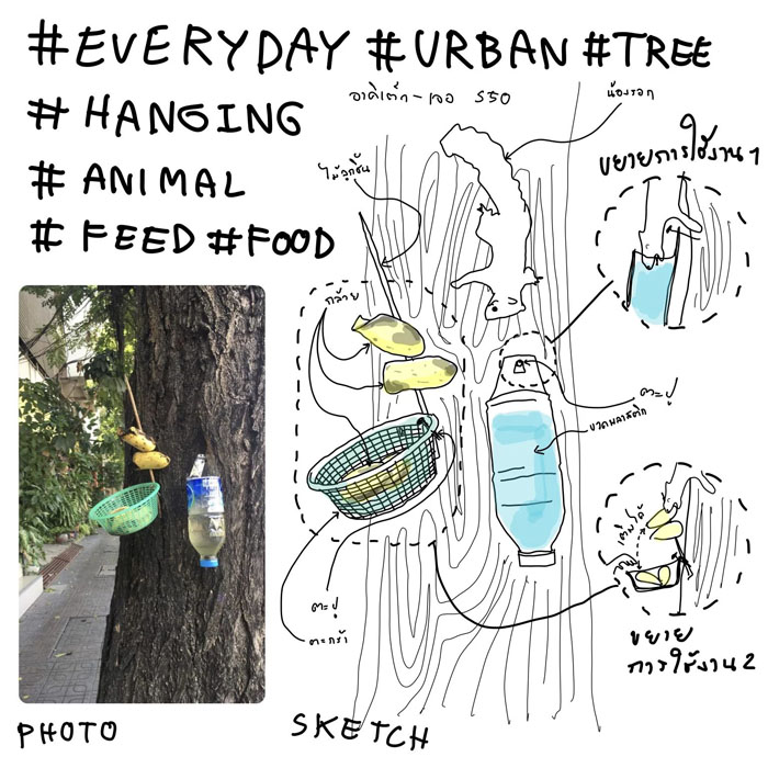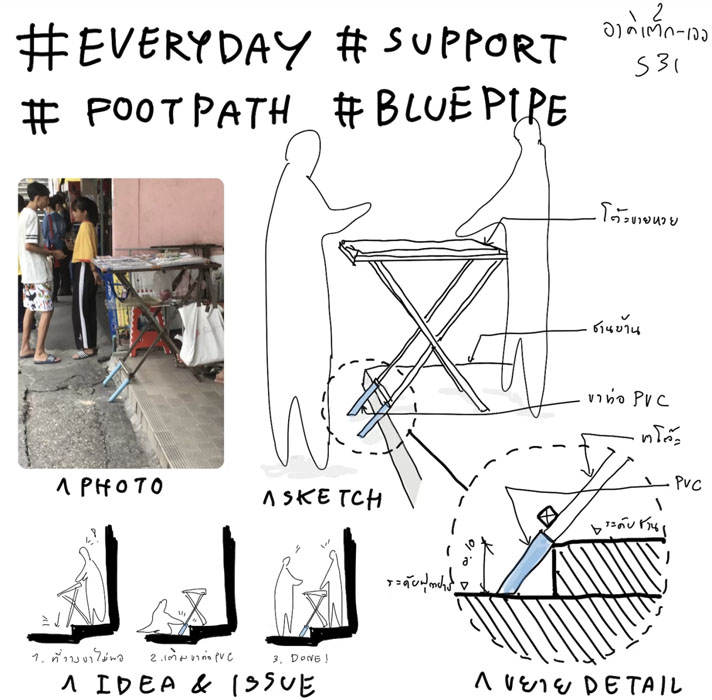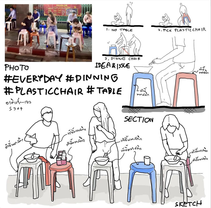 由于这里缺少地下水,泰国西昌岛水资源相对匮乏,这里大多数房屋屋顶的排水沟下都会通过橡胶软管收集雨水以供使用。 图一给灯泡穿上纸衣服,聚拢灯光;图二为了避免灯泡过亮被晃眼,套上塑料袋来减弱刺眼的光线 在泰国,人们很擅长创造新的使用空间:在水道上部架设木板,椅子结合设置在河边的护栏上,在树池之间搭建木板,就创造了很多新的休息区。 沙发、椅子、挂物架、晒衣架......图二为泰国的摩托车出租车司机在分又的树干上搭建的椅子。 图一:给孩子自制一个学习空间;图二三四:自制的灯常见于夜市还有路边摊,泰国夜生活的需求和街头灯光不足以照亮摊位的现状,促使它们利用便宜的PVC管和灯泡自制。 制造楼梯 随时随地,拥有移动座椅 两把椅子加一起,除了可以创造一个晾衣空间,还可以创造一副桌椅。 因为泰国的阳光太强烈了,所以人们会使用各种材料和方式创造遮阳板。这些都是临时的,容易安装和拆卸,并根据太阳角度调整方向,以适应环境。 空间管理大师 禁止停车