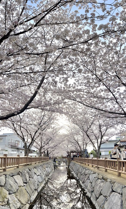 京都的哲学小道和圆山公园是著名的赏樱胜地,樱花盛开时如粉色云霞。其中,哲学小道长约2000米,两侧生长着三四百株樱花,大多是染井吉野。花期之后,可以看到花瓣掉落到旁边河面的“花筏”景观。小道的名字源于这里曾是哲学家西田几多郎特别喜欢的散步路线,人们可以漫步在这里,边赏樱,边思考“何为生,何为爱人”这些永恒命题。