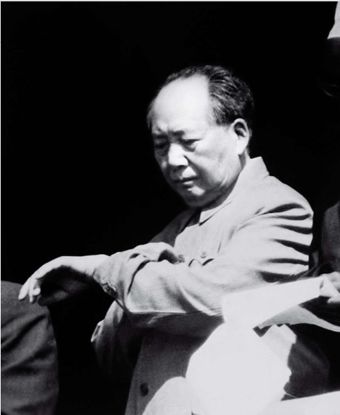 1966年国庆节,毛泽东在天安门城楼上低头看表。“一万年太久,只争朝夕”,他不止一次表达过对时间的看法。此时,据“文革”正式发动不到五个月,但这一天已经是他第四次检阅红卫兵。一个史无前例的时代沸腾了。 国外媒体也连篇累牍报道了新中国的第17个国庆,他们有人总结说,几乎整个北京城,都被《毛主席语录》占据了,广场上的庆祝人群有150万之众,活动持续了五个多小时。其间,毛泽东只休息了大约30分钟左右。他基本上一直都站在主席台上。