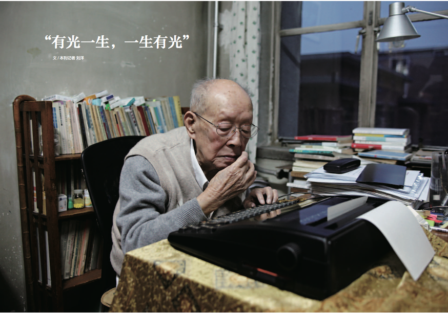 周有光坐在书桌前,向《Lens》记者展示如何使用他的文字处理机,他在纸上敲出“中国”两个字。上世纪80年代,日本夏普公司根据周有光提出的“从拼音到汉字自动变换不用编码”的设想,研制出这种中西文电子打字机(WL-1000C),并送给周有光试用。那个时候,85岁的周有光刚刚离休,他回到家中,开始“弃笔”写作,写文章、写信、编辑书稿都用这种打字机完成,他说“工作效率提高了5倍”。后来妻子张允和也开始学习使用打字机,并向老伴儿周有光学习汉语拼音的使用法。她学会的第一个词组是“亲爱的”。