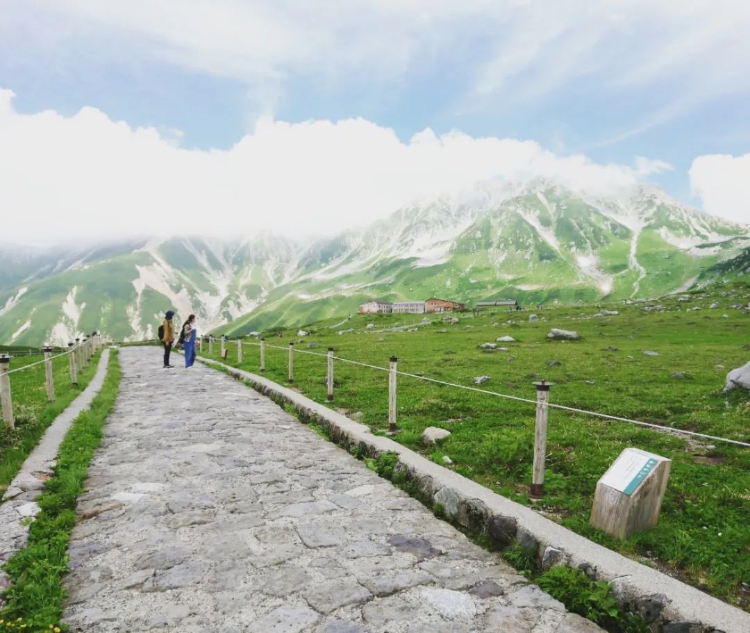 7月和8月是立山的夏天,也是观光、登山和徒步的最佳季节。立山的徒步路线多集中在堂室。室堂是立山附近的一个火山高原,它位于立山黑部阿尔卑斯山脉路线上,这里的积雪可以保持到7月。夏天,也是观赏绿叶的最佳季节。