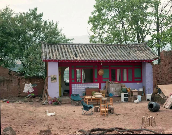 以前的家是租来的,改造要看房东的脾气,小时候住在父母的房子则要看他们的生活习惯。而这个小屋,我拥有最大的自由度,因为它是我一个人的,虽然我也不知道要怎么搞,但充满热情。有一天我在小屋看向对面的山,山上种满了绿色的烟叶,有一个妇女带着紫色的帽子在绿丛中穿梭。她全身的衣服是暗色的,只有那顶帽子是紫色的,我觉得好美。小屋坐落在一片绿色的自然里,我就让小屋变成了紫色。