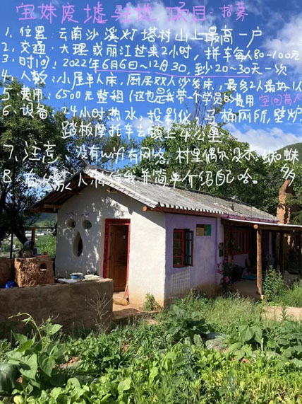 29岁时钟宝妹在云南沙溪的村子里搭了一个小房子。过去两年,她在这里生活、拍照,养了一只鹅。在网络上,不少人以摄影师的身份认识她,本文发布时,宝妹告别了小屋,开启了间隔年的旅行——告别后是新的开始。离开上海之后,我没有想过要在云南住下来。之前每次来是找在大理的朋友玩,顺便也会去趟沙溪。2020年8月底,我短住在沙溪灯塔村的客栈里。当时喜欢在村里散步,远远看见两面高高的土墙在艳阳下发着光芒,走近之后发现土墙内还坐落着一个破旧的小屋,真是太美了,我就起了租下来的贪念。废墟小屋在村子的最高一户,废墟有400多平方米,但小屋只有20多平方米。小屋以前是灶房(厨房),已经荒废近20年了。