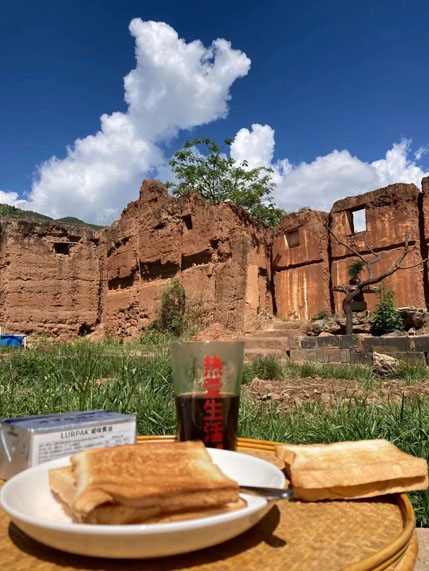 初见小屋那天天气很好,土墙在阳光下很漂亮。20年前这里本来像四合院一样,后来因为交通不便,房主就把木料和瓦片全拆走了,就只剩下墙体在这里。